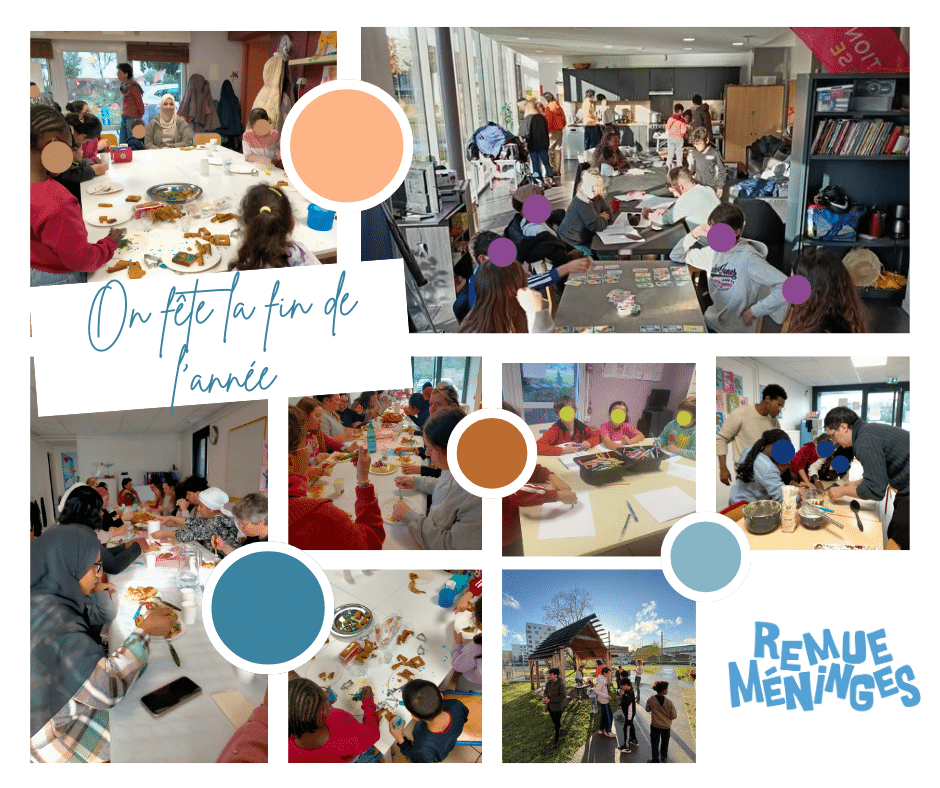 Tout au long du mois de décembre 2025, au sein de REMUE MENINGES, nous avons fêté la fin de l’année avec les enfants et les dans le cadre de nos activités d’accompagnement à la scolarité et à la parentalité : gâteaux, crêpes et sablés, puis dégustation ont été rendez-vous tandis que les mamans de l’Atelier des Mots ont confectionné, chacune une de leur délicieuses spécialités culinaires.